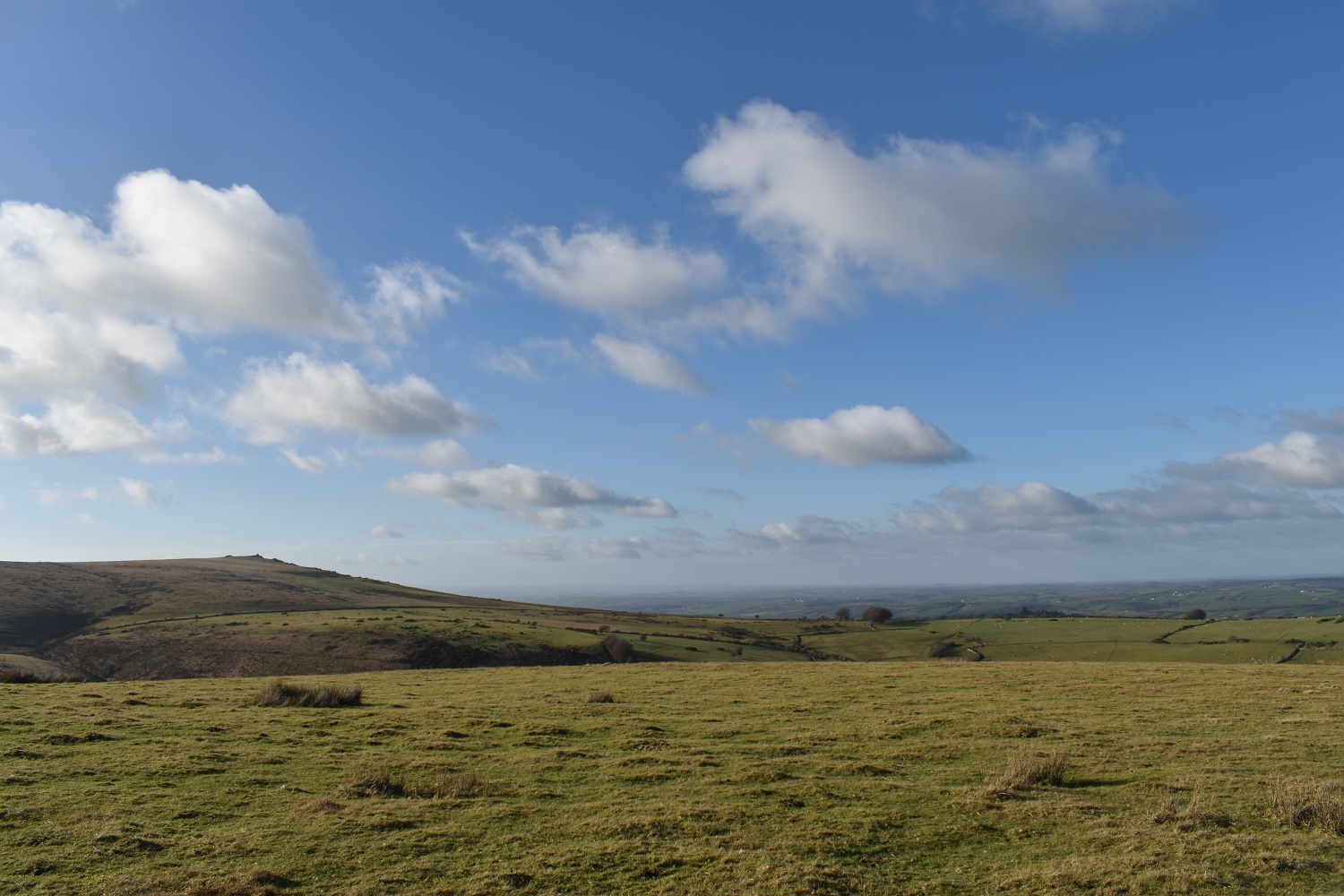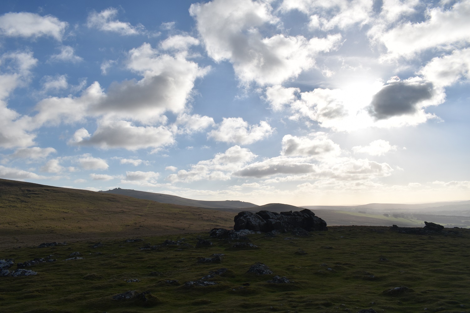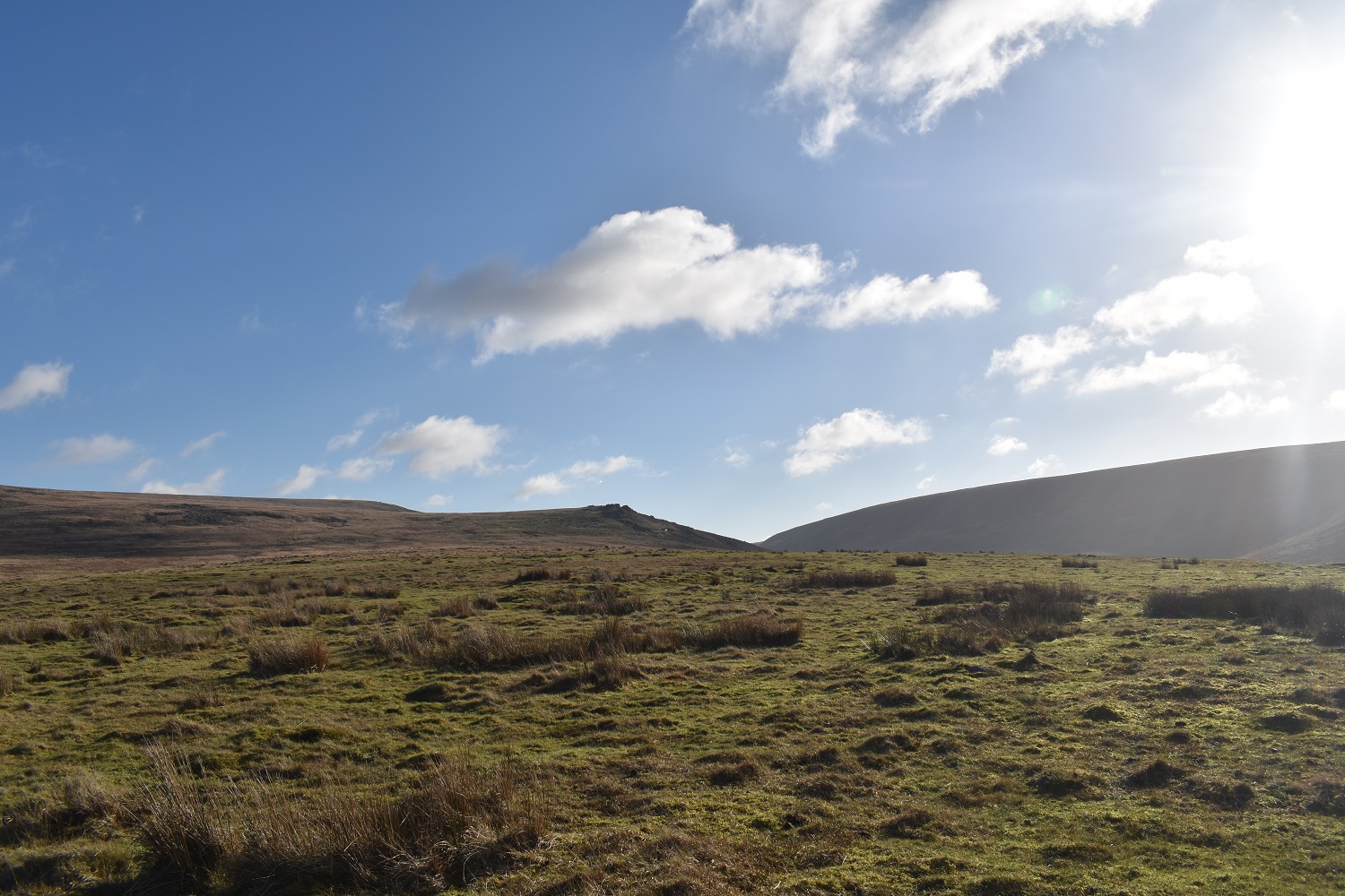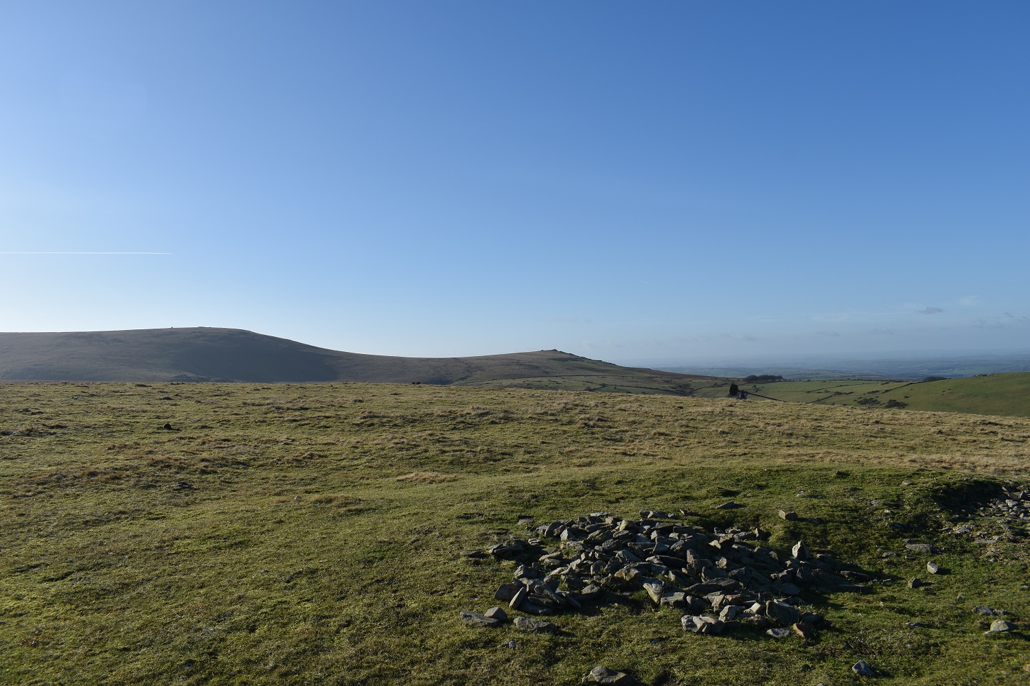 I follow the West Devon Way to start with towards South Down, here looking to Yes Tor with a thin layer of cloud over the moors preventing the sun from shining on me.