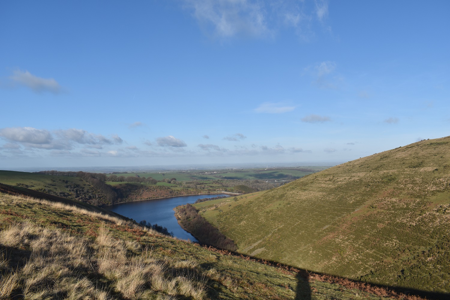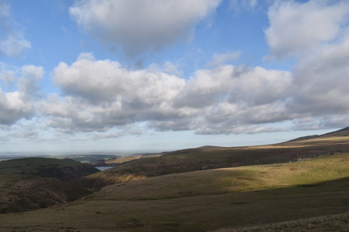 Meldon reservoir as I ascend Longstone Hill, South Down is on the other side of the reservoir, with Sourton Tor at the far end in the distance