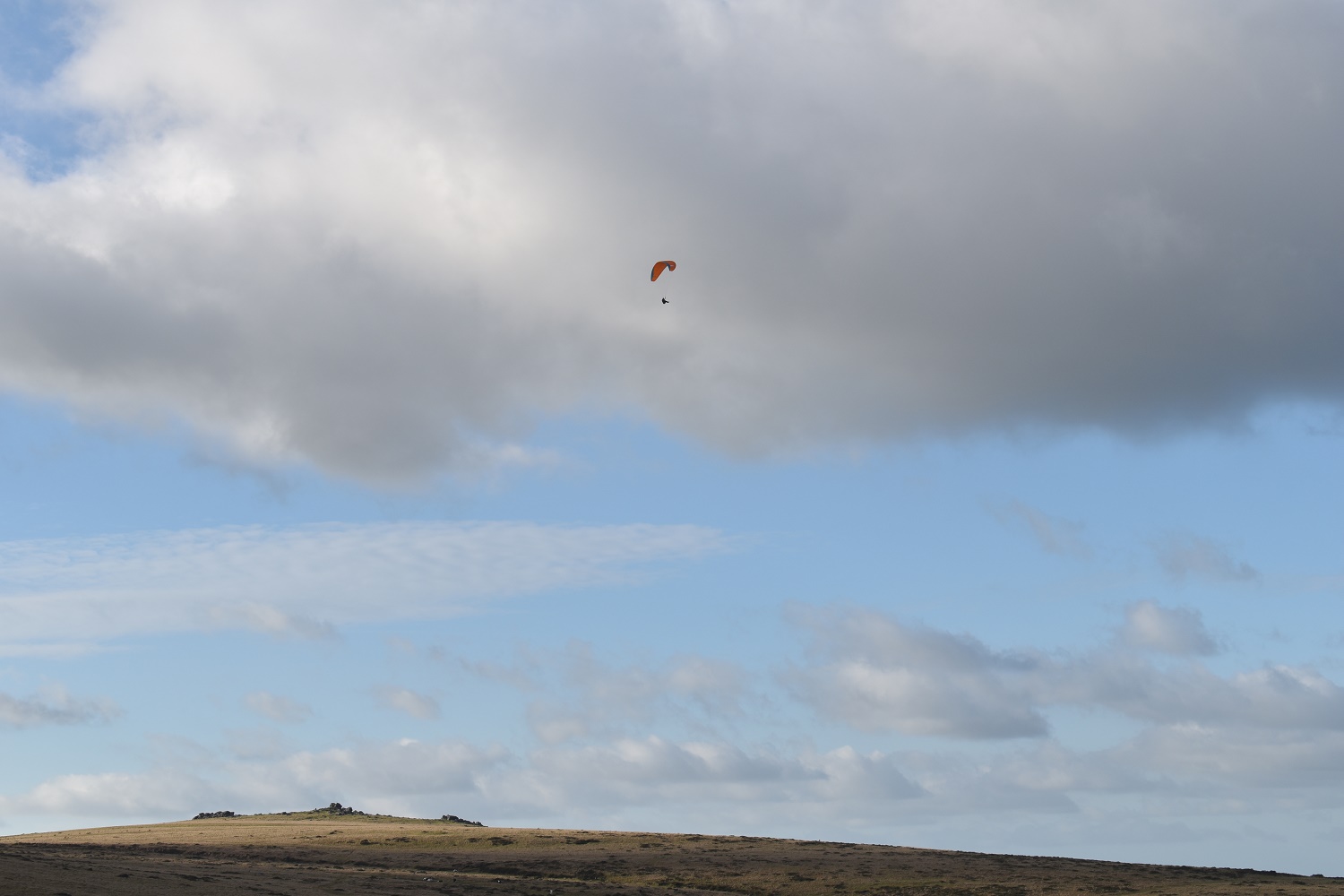 When I parked up I’d seen a guy get out of his van and take a large rucksack out and head off towards Sourton Tor. I’d wondered why he would want to camp at this time of year, however clearly this was him, parasailing around Branscombe’s Loaf and Sourton Tor!!