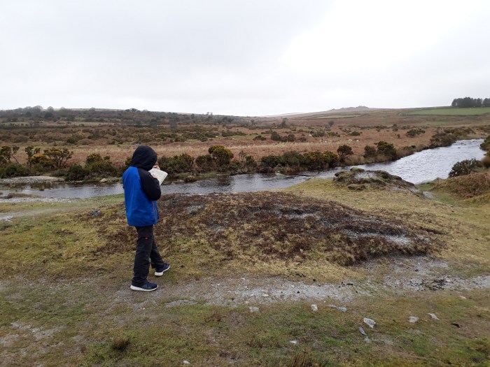 A short Saturday trip out with the boys and a chance to do some of my youngest’s homework. He’s been given a booklet with lots of different tasks in it to complete, things like a blind taste test, climb a mountain/hill, go to a science lab and learn to read an OS map. So here we were, parked up near to Cadover Bridge, with the plan for him to lead us to Shadyback Tor (which I had located for him as it is not marked on the OL28 map). He first used the compass to locate north and the worked out which way that was on the map and the direction we needed to head, picked out the landmarks we would pass and took us along the correct path to the area were you could see the tor easily. It was good fun and something that I will get him doing again in the future on some of our longer walks. It was only a short walk of around a mile and the weather was a bit grotty and overcast, but some credit to the school for giving a great piece of home work.