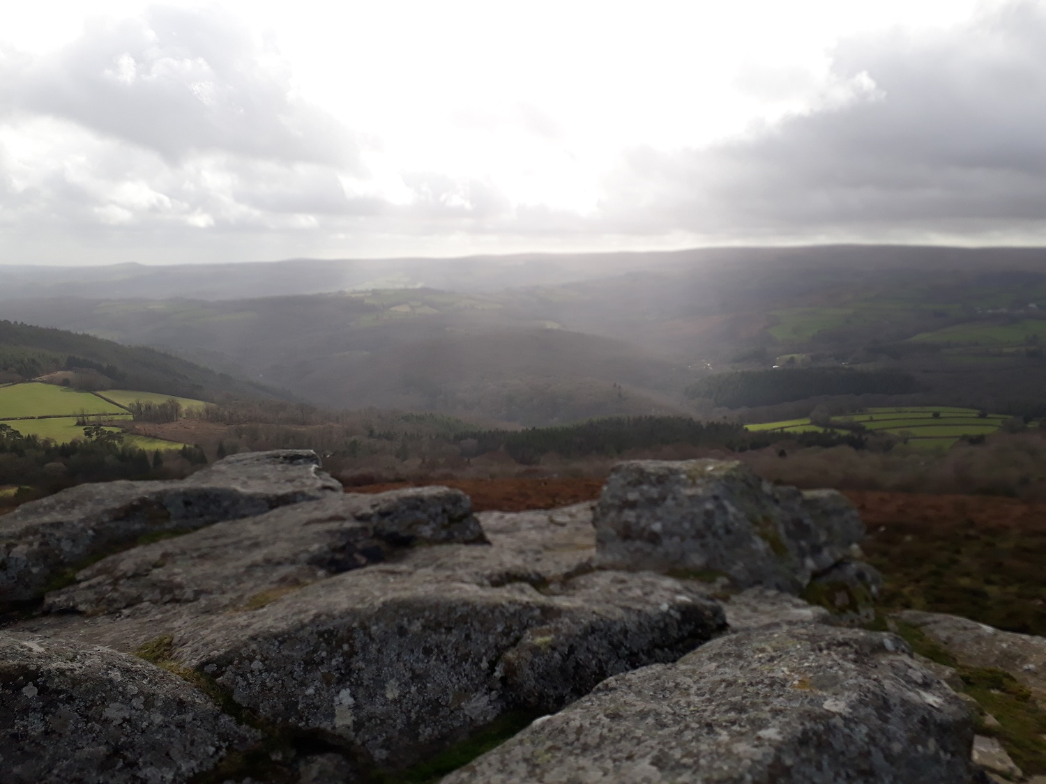 On Buckland Beacon now as a rain shower passes through the Dart Valley