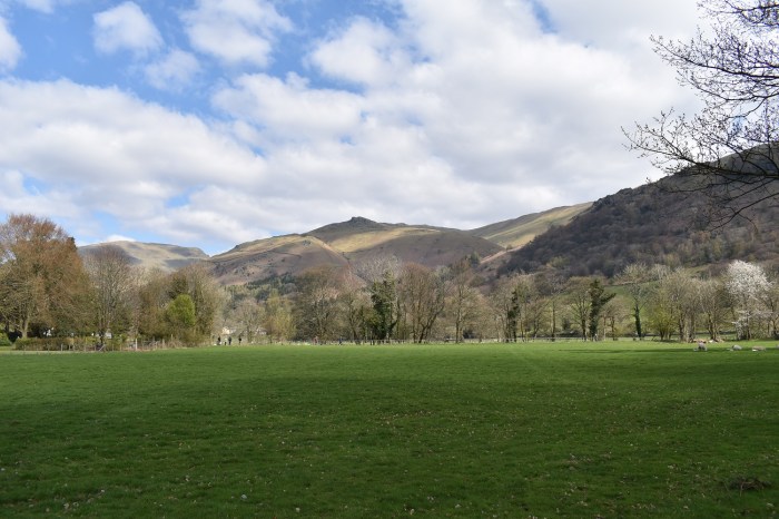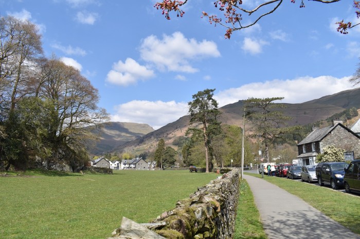 Easedale to the left of Helm Crag and Steel Fell to the right, some nice sunshine as I walked out of Grasmere to the A591