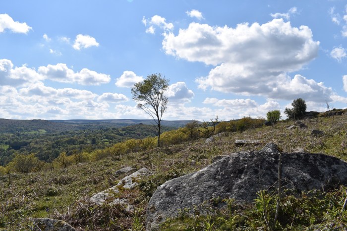 Back again to one of my favourite spots. I love it here, and when the sun is shining it is a great place. My boys hadn’t been here so I decided to take them for a short walk around the Cleave, picking out the best bits. That meant Raven’s Tor, The Old Clam bridge, a bonus walk through bluebells and Harton Chest. Now I had told them about Harton Chest, but as it is with kids these days, they don’t think that anything will wow them. Needless to say my eldest was a bit twitchy on the high rock, and wanted to stay back from the edge, a bit of humility never hurt anyone. The sun shone all the way around and lit up the green leaves on the trees, and made for a great walk, the only tough part was the direct route up to Raven’s Tor from below, a bit of a scramble here and there, but nothing too difficult with the ground cover being low. All that was left was the fine ridge walk and drop down to the car. A place I don’t tire of.
