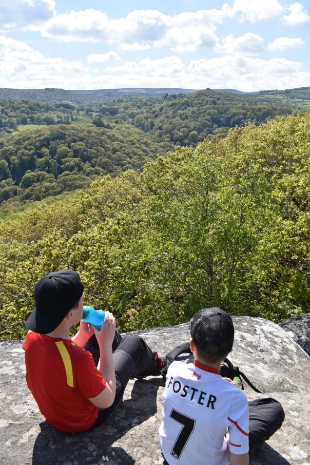 Right, this is Harton Chest and just like kids at Christmas they were waiting to see what unfolded beyond. I’d told them there was a view and a perched rock to scramble on to, now to see how they saw it.