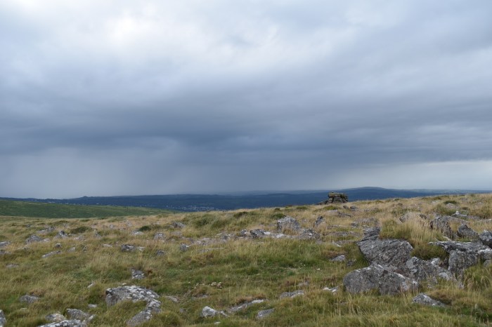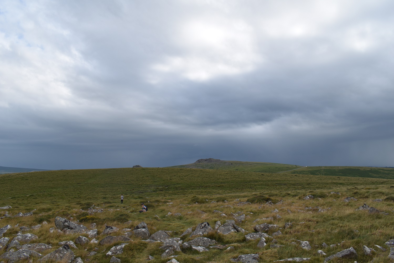 Erm it doesn’t look good over there. Which is the way we are going. The boys have smelt the rain and are heading towards the car already!! That’s Sharpitor and Leather Tor over there