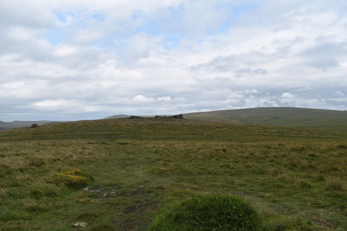 Leeden Tor with South Hessary Tor away to the right. The Princetown mast is left of the Leeden Tor rocks, I have good intel that the Dartmoor distillery is being built in Princetown and the diggers are onsite. Dartmoor whisky is a step nearer.