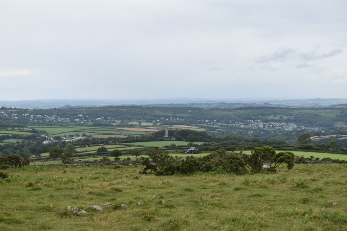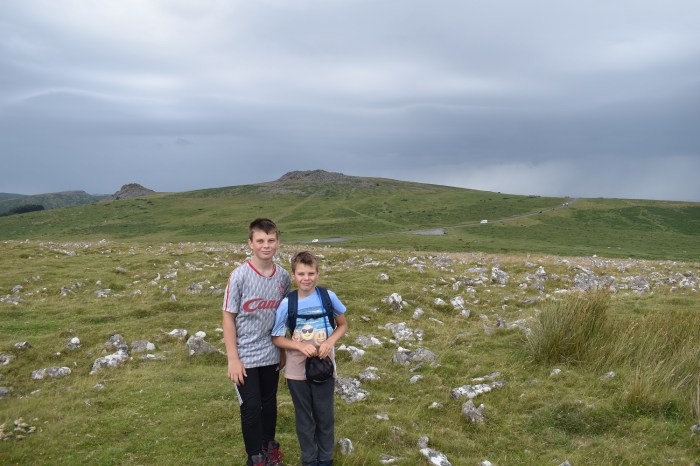 This wasn’t supposed to be the walk today, I had grand plans of driving into Cornwall and heading up to the highest point of that county, Brown Willy (stop laughing, it is called that). We had walked up High Willhays the last time out, and it would have been a nice symmetry to scale Brown Willy as well. However Monday morning came and I sat, the boys played with their Lego or on their phones and I couldn’t be bothered to move. The weather was forecast to get wetter as the day went on, and by lunchtime I’d canned the idea of Cornwall and instead headed off to a well walked area, to head down a road I’d never trod before. The walk started out ok, but on reaching the part where we should join a grassy path through walls and around a farm, we hit cows and their calves. I took the safe route, over a gate we shouldn’t have crossed, but then again I figured the farmer put the cows there and I wasn’t going to disturb them. After a bit of faffing we got on the right path and headed the right way to Gypsy Rock. Now this one isn’t a highlight on my list, infact if there were only two tors on my list then this one would be third. its that bad. Just bag it and move on. the walk along the railway path was superb and you have fine views over to Pew Tor and beyond. However the rain was definitely coming and we shortened the walk to Ingra Tor and instead just scaled Leeden Tor and back to the car. A minute after leaving the car park the heavens opened, heavily as well. Good timing and a nice little walk which could very easily be lengthened.
