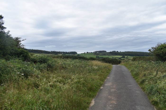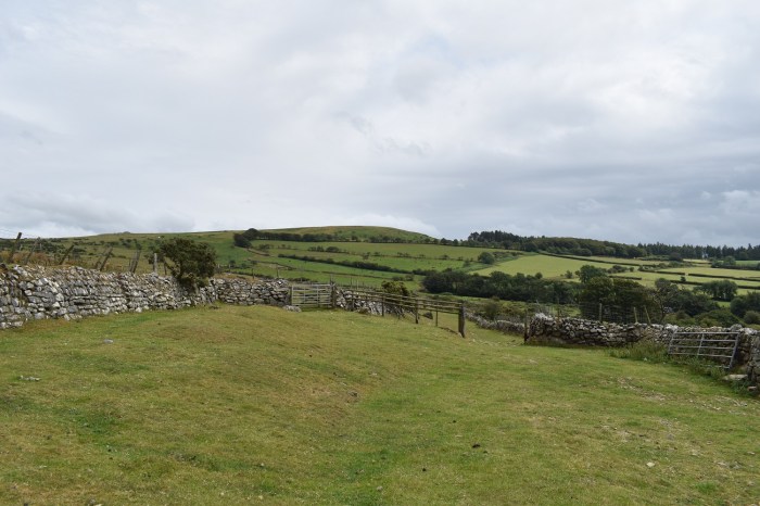 Peek Hill in the distance as we look back along the grassy lane, we have circumnavigated the bovine fiends and are now on track for Gypsy Rock