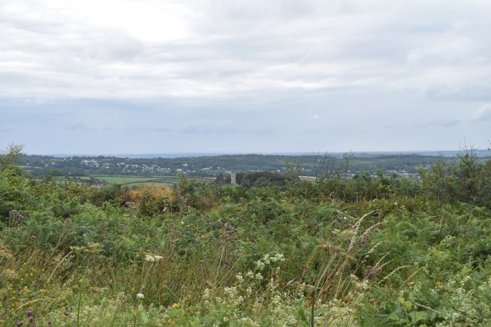 We’ve left the road now having crossed the cattle grid, and we are climbing the short distance to the railway track path. That’s Kit Hill in the distance