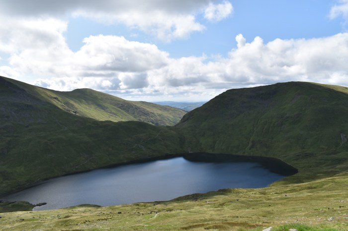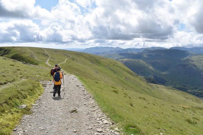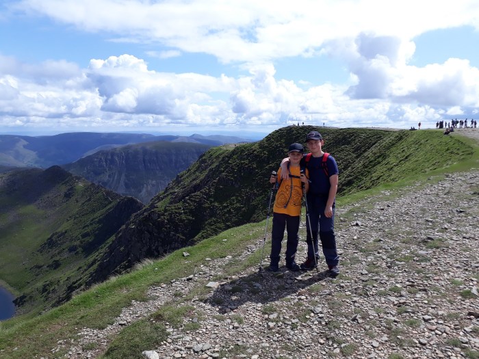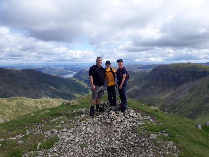 After three walks in three days we had a couple of days off, with a pootle around Ambleside on one day, followed by a trip to Keswick for some present shopping the next. We were ready for our next walk. The strange thing about this walk was that we discussed it 12 months ago when walking around the Coniston Fells, knowing we were staying in Grasmere this summer. The boys always want to know which big mountain will be their next one. Well we decided on Helvellyn last summer as this would then be their highest summit, and here we were, stood by the AA phone box on the A591, all ready to go. The weather was perfect, in fact it was ideal all day, with Helvellyn being the only 900metre plus fell in the district not to see cloud that day. This is a popular fell for a lot of the year, however coming at it from the south west seems to be the quietest way, when compared to Browncove Crags and the obvious Striding/Swirral Edges route. We had no more than 10 people on the same route as us, all the way up. We passed a few, and some sped past us as we stopped to admire the views down the Grisedale valley. I had been up Helvellyn once before, my first Wainwright back in 2010. Both Nethermost and Dollywaggon were first visits for me and I was taken aback at the views from the summit of Dollywaggon, which were amazing, the best of the day. On my first visit to Helvellyn the cloud had descended on my traverse of Striding Edge meaning I didn’t get a view back along The Edge from the climb up to Helvellyn, this time however I made sure I walked over to the edge of the Helvellyn plateau to look down and along the famous Edge. With that I was content to descend along the good path down to Wythburn before following the woodland track back to the car. This is a really good walk and the Raise Beck route deserves more attention as an ascent to Grisedale Tarn, as for next year we have already discussed that it could be Bowfell or Scafell Pike for the boys!!
