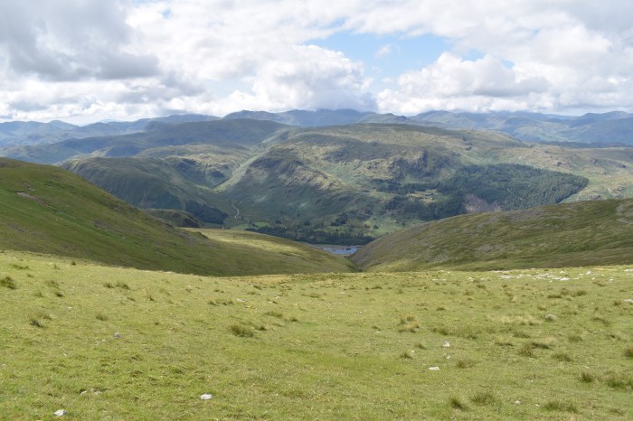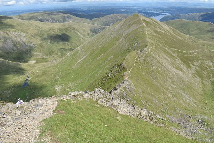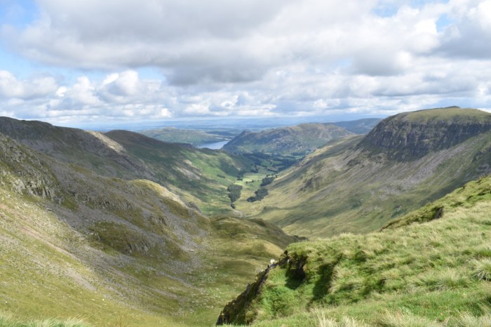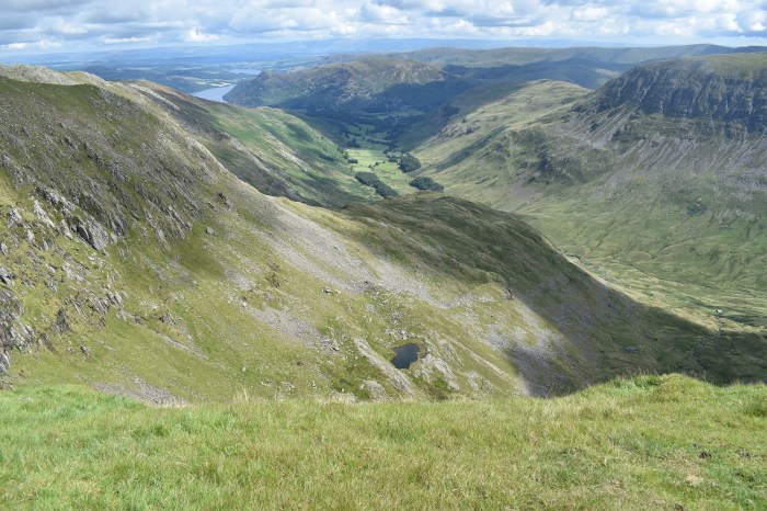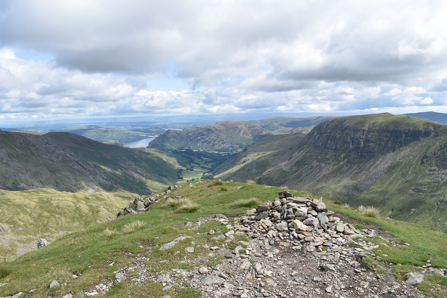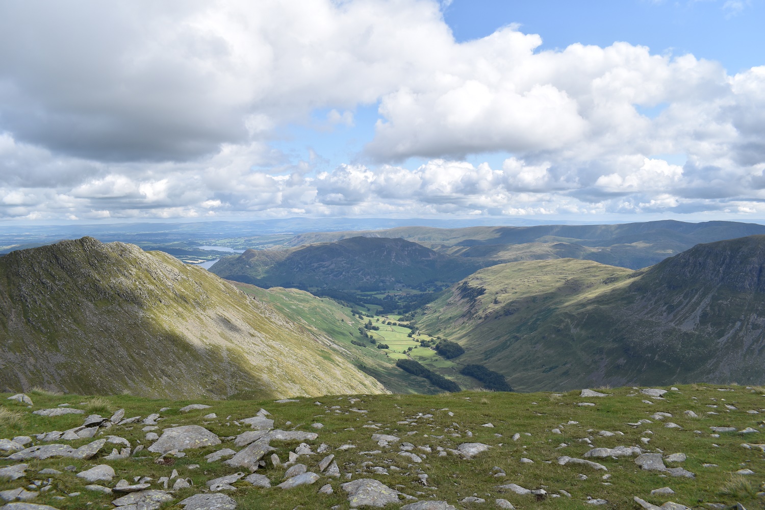Wow, on reaching Dollywaggon Pike summit you get this view along the Grisedale valley. St Sunday Crag is to the right with a glimpse of Ullswater in the distance
