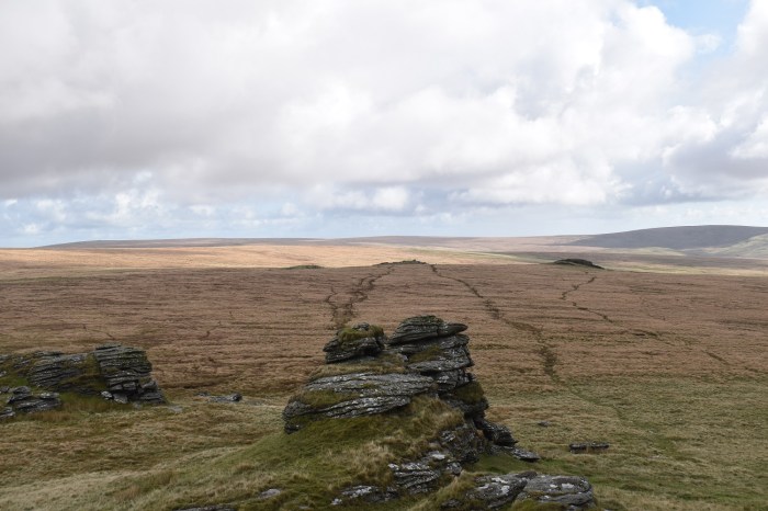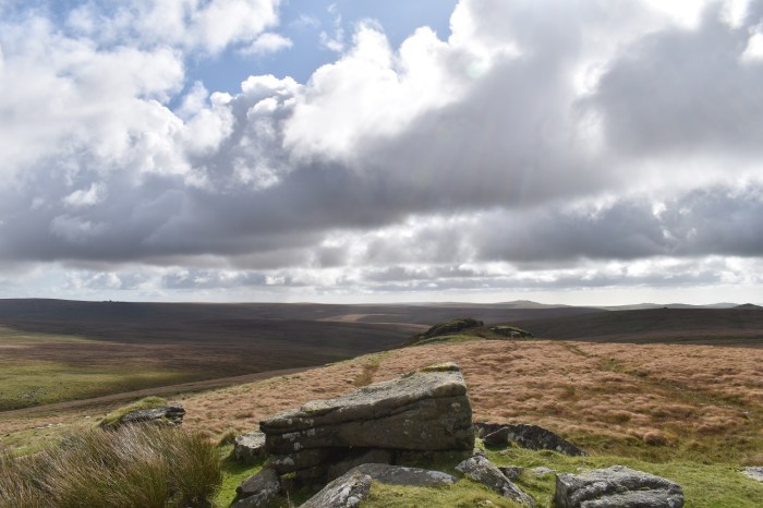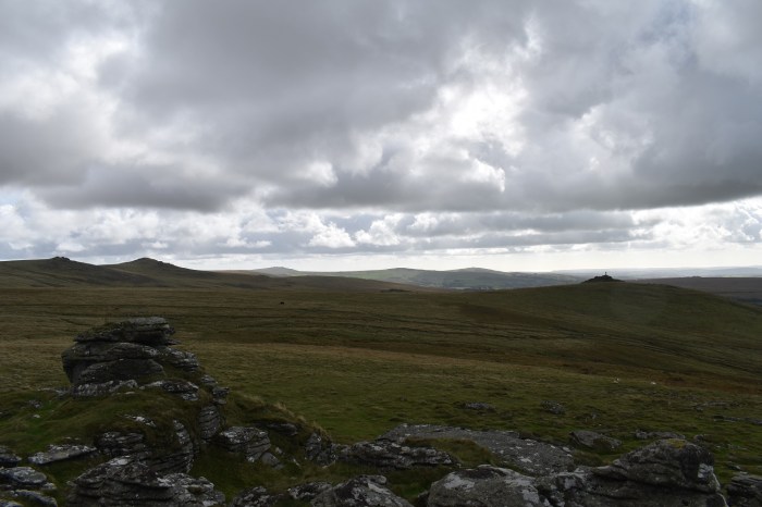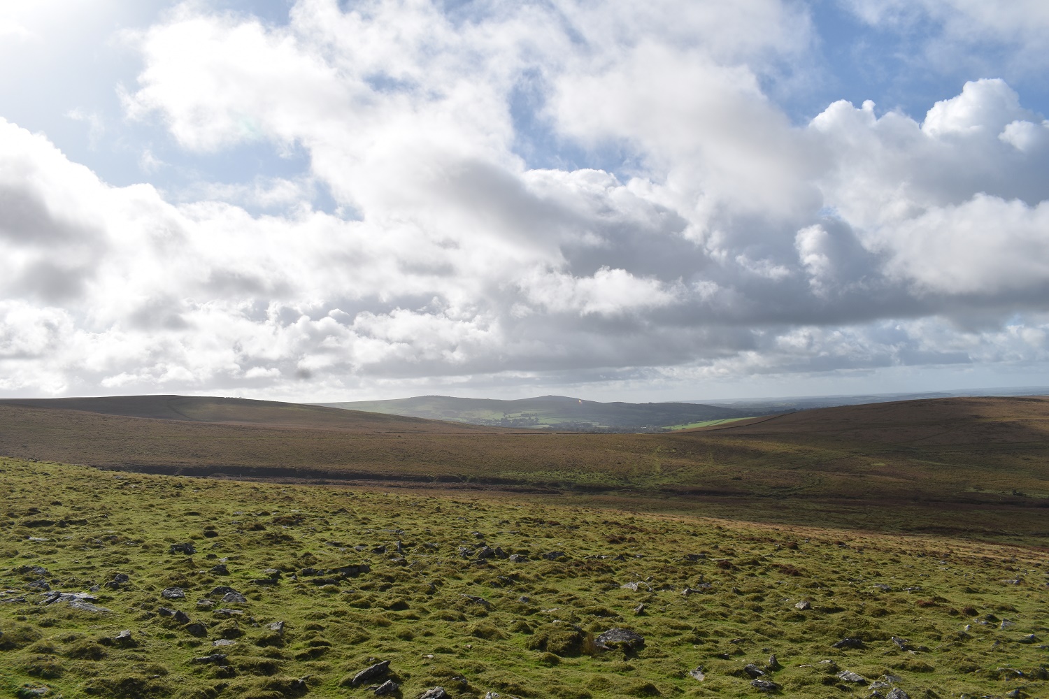The wilderness behind Sharp Tor, with the horizon including Black Hill and Cut Hill. Fur Tor is also infront of Cut Hill for the keen eyed.