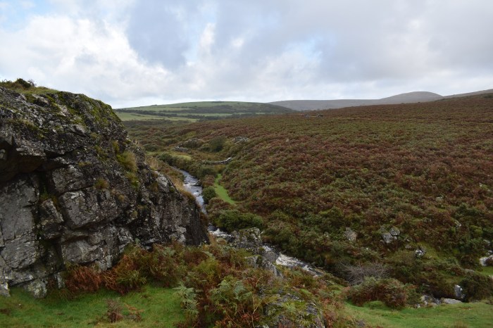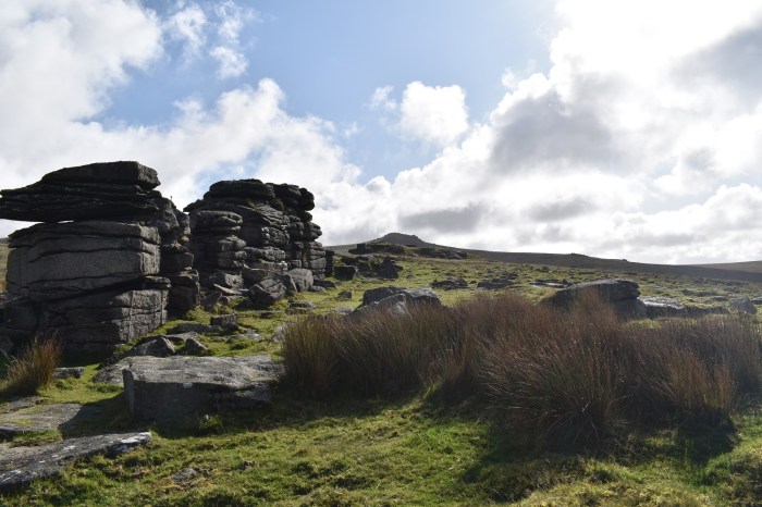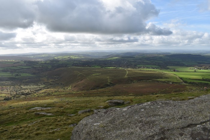 Like most of the country we’ve had some wet weather down here in the South West, meaning my visits out have not been as frequent recently as I would like. It has also meant the ground underfoot has started to take on its more normal squidgy, boggy self. The other change since my last walk, around the Hameldown area, is the temperature. That day I was in a t-shirt, not today a fleece was needed and at times I was cursing not bringing gloves. Autumn is most definitely here, and on the high moor, with a wind blowing, it will feel more like winter from now on. Now this walk, and the area, is classic Dartmoor. This western side has some of the best long range views in the South West and most of the tors will have the view and are reasonably in reach from the car park behind the Dartmoor Inn (Lydford). Only if you plan to head beyond Green Tor will you be heading away from good obvious paths, this is a fine area for walking and you can add or take away tors to suit the length of walk you need. For me, I wanted to head up to Sharp Tor, then roughly across to Greak Links before returning past Smallacombe Rock and Arms Tor. All in all a good walk in some lovely territory.