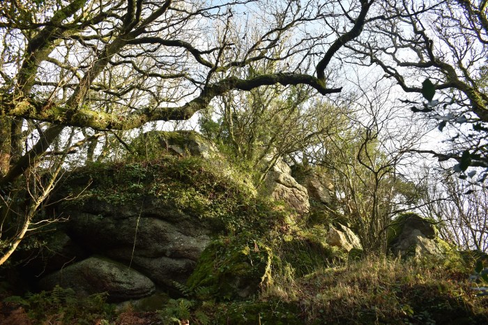 This walk has taken a bit of time to write up. The main reason being that I’ve extended my list of Dartmoor tors, from 400 to 500, and in doing so, this meant finding another 100 tors to include. Now looking at the many tors lists that are out there, I was missing lots of tors within woodlands on the eastern side of Dartmoor, there was the odd one here and there around the periphery of the rest of Dartmoor, but I had batches of tors in the east within woodland such as Wray Cleave, Castor, Shaptor, Bearacleave, Whiddon and Neadon. Once I’d got the lists sorted and on this site, I could then start planning some routes. This is my first of these walks, now this isn’t my first time into this area, far from it. I’ve been twice into Shaptor Wood already, however Castor Woods was new to me and Bullaton Rock was unclaimed on my old list. The thing to realise about the eastern side of Dartmoor is that it is nothing like Dartmoor proper, there are no rolling hills, no military firing areas and less in the way of expansive views and less boggy areas. Walking within the woodlands can be tough as the tors are usually off a path, and it can feel like you are only there to bag the tor and it feels less like a walk. That’s why I will tend to walk in from a distance away to give a there and return element to these walks, whilst heading into woodland to bag the tors. However these tors can be just as big, some are huge and when you do get a view, its usually a cracker. There will be a fair bit of road walking in this area also, however that can be nice as they wind through the countryside taking you from woodland to Down and then to to a large outcrop or rock. I’m looking forward to varying my walks in this way, interspersing these with normal moorland walks.