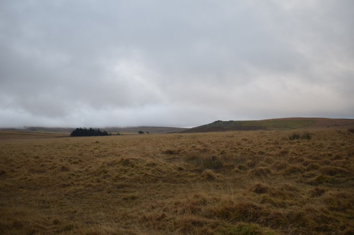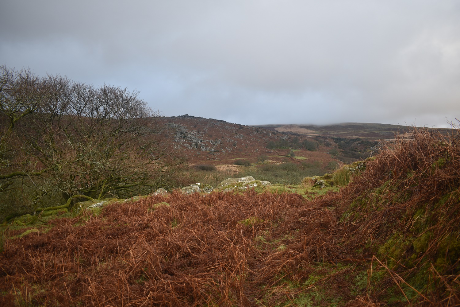 Looking out from Deancombe Rocks. Sheeps Tor is on the left and normally you would have Peek Hill and Leather Tor straight ahead