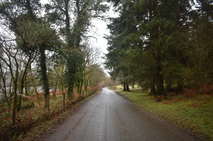 As you reach the road you can carry straight on across the road to follow the leat, we dropped down the road and through a gate to follow the reservoir path, looking back here to the dam end of Burrator
