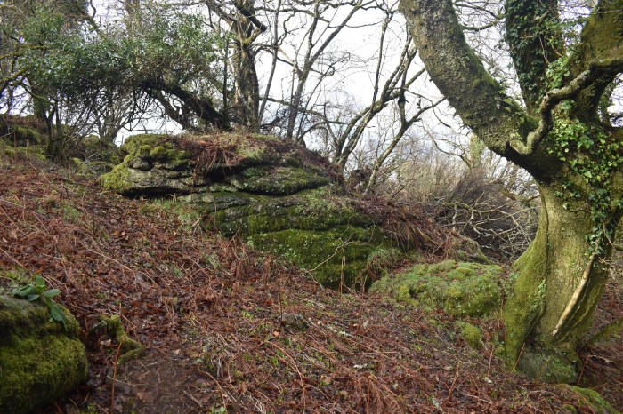 The wall and Doccombe Rock, the main path through these parts is just behind me