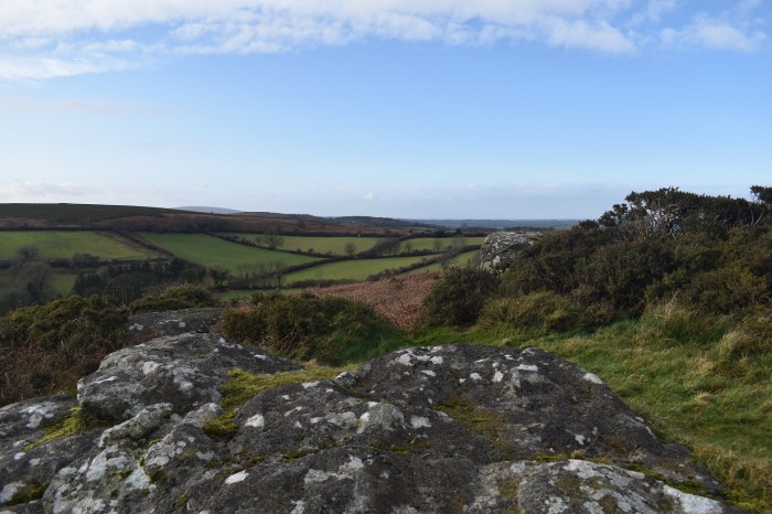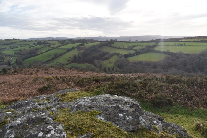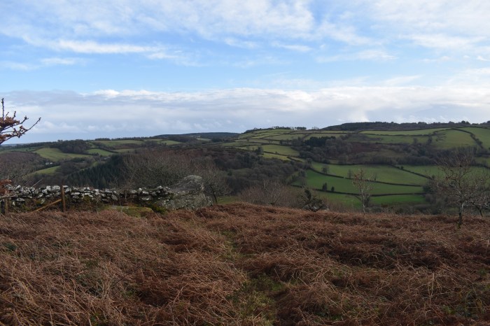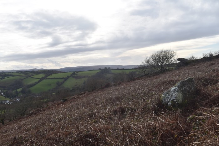 Stay high from Doccombe Rock, if anything climb a little to find Stacombe Tor, again there is a lot of bracken between the two so pick a high path. The view from Stacombe Tor includes Cosdon Hill away in the distance