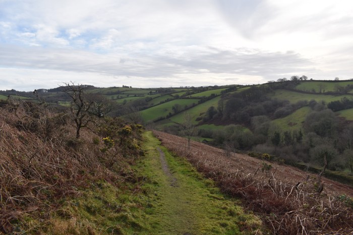 The sun is out now and the long distance views start to look better as I follow the grassy lonning up to Mardon Down