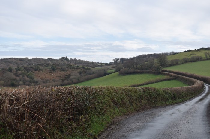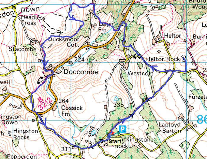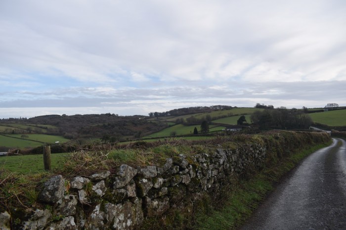 This was day 2 of Storm Dennis, I was eagerly keeping an eye on the weather reports, which mostly said that the rain would stop about 2pm and the wind would be reasonable by midday. I don’t mind a wet start to a walk as long as I finish in the dry with time to dry off most things before the end. I’d timed it pretty well by starting the walk at 1pm, however to get there I’d run the gauntlet. Rule number one of driving through puddles, is know how deep they are and don’t drive through them if in doubt. Well I was heading up the A382 following a 4×4, just after Wray Barton, at the section where the old railway line crosses the road twice, when I hit water. The 4×4 in front carried on and I hesitated, they went for it. It was deep, maybe 50cm, a car coming the other way had broken down and I looked beyond it to see about another 200 metres of deep water. I weaved and kept my speed constant, found higher parts of the road and got lucky. Very, very lucky. I pulled up at Blackingstone Rock with my heart still pumping in my mouth. I was glad to get walking and along the long steady road to Heltor Rock. Needless to say I went home along a higher road past the 3 reservoirs and down to Slade Cross! This is a good walk, not too far, mostly on quiet lanes with a short section over a lower part of Mardon Down. you could easily stay higher on Mardon Down if you wanted to make the walk a little longer. The rocks and tors along the lower part of Mardon Down are decent, with some good views to the higher points of Haytor and Hound Tor in Dartmoor proper. It was lovely to finish in some sunshine as well as we’ve had enough of these storms now.