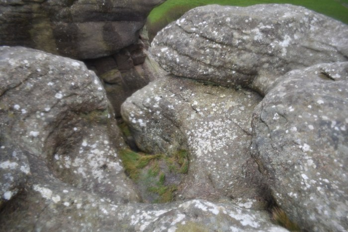 A huge rock basin on Heltor Rock, the water has eventually worn its way through and out of the side
