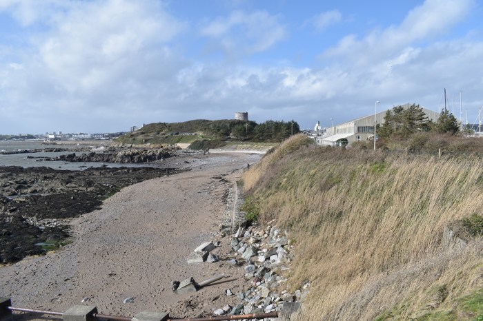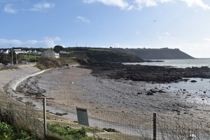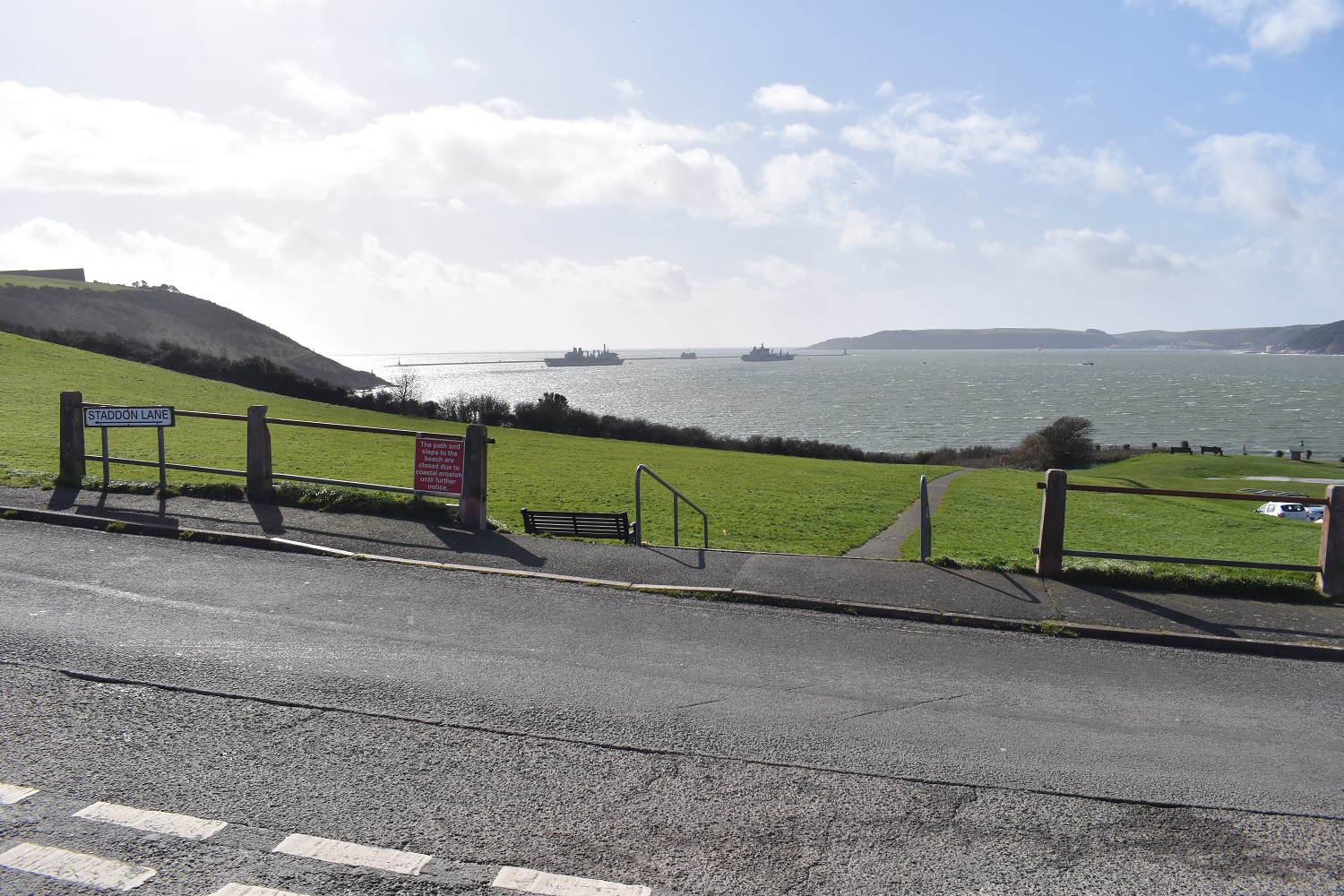 And the other way back to Jennycliff. The two masts at the back identify Fort Staddon. A major defense fort against French attack in the 1860s