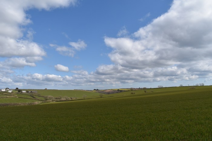 If I’m honest it took me a while to get out the door and walk during lockdown week 1. This is one of a few nice walks that I can easily do from the house but I just didn’t have the want to walk straight away feeling. I stayed in and did my bit instead. Eventually cabin fever hits hard and you need to get out and see some blue sky. Now I’m not one to complain about nice weather, but why the hell now. We’ve had day after day of blue skies and perfect sunsets, for over a week now I’ve woken to sunshine on the curtains, talk about poor timing. Or is it good timing, the ability to sit out in the garden for a bit at the moment is very important. Anyway I diverge, the walk is a simple one, a few hundred metres up the road, turn left across farmers fields, to the edge of Wembury, loop right past Langdon Court and more fields to the edge of Staddiscombe and back home. About 4 miles and easy peasy to get around.