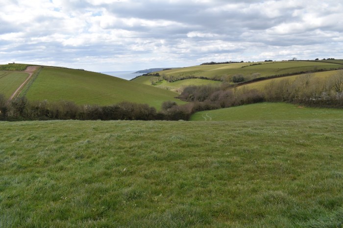 I’m on the edge of Wembury now, the sea is still in sight but I’ve cut off again across more fields towards Langdon Court