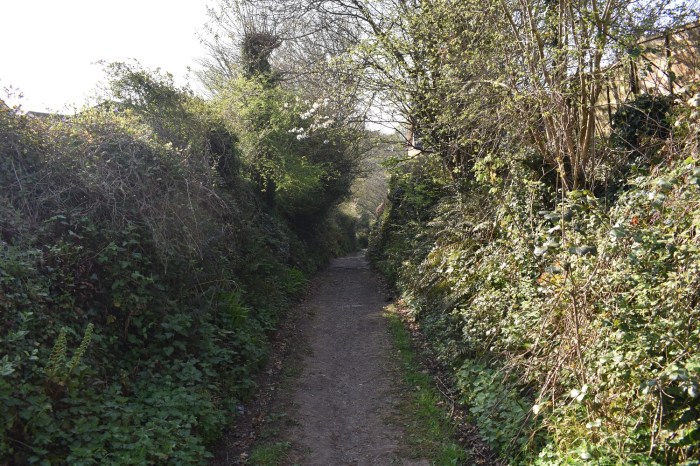 Across the roundabout in Elburton and then a right on to this lane. This will take me down to the old railway line which ran from Plymouth to Yealmpton and was closed by the Richard Beeching cuts in the 1960s