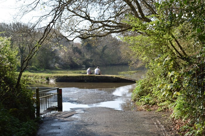 Fordbrook estuary and Cofflete Creek. The patch of concrete ahead disappeared and then reemerged again in 5 minutes as I arrived bang on high tide. The people sat there managed to get there before the water came in (its about a foot deep) and sat there drinking coffee. A lovely spot in this weather