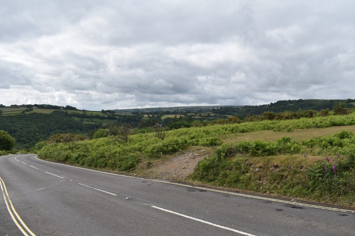 At the car park, looking in the direction of Leigh Tor, which is in the trees to the left about 100 metres from where I am stood
