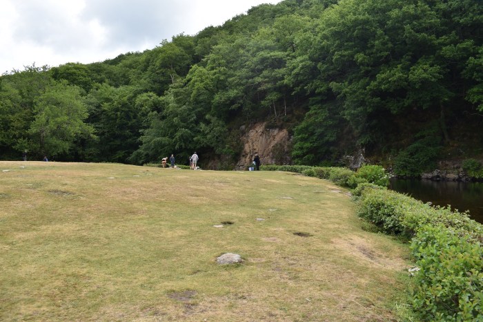 The island in the middle of the River Dart, there was a bridge to this spot but it was washed away over the winters flood.
