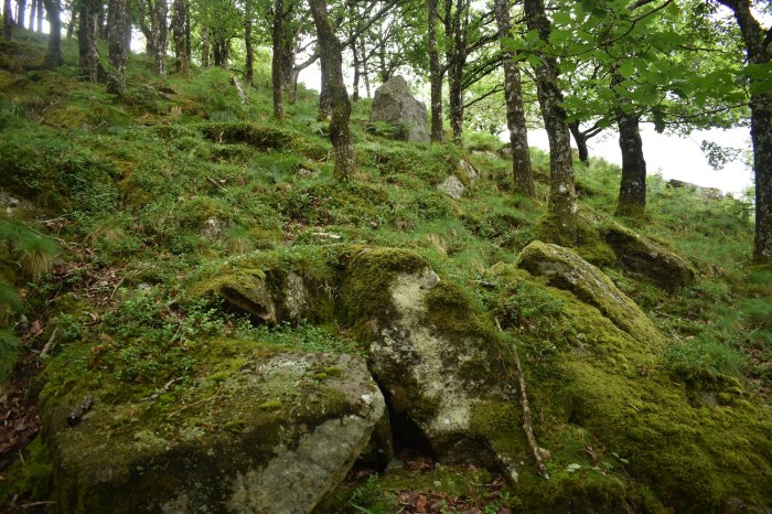 More rocks as you head upwards. You need to head out into the open ground beyond the trees to find the main outcrops to this one though