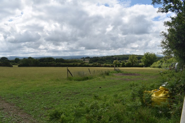 Out of the woods and along the lane for a distance, I then turned off for Pin Tor (which is in the trees up there) I got talking to the farmer who runs this area and is setting up a kind of woodland seating area below the tor to the left. With him being around I chose not to summit the tor but move on to…..