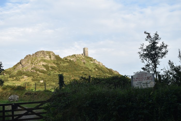 This walk isn’t far at all. The car park is behind me, then its through the gate and up to St Michael de Rupe church. 10 minutes at most, even with stopping for photos