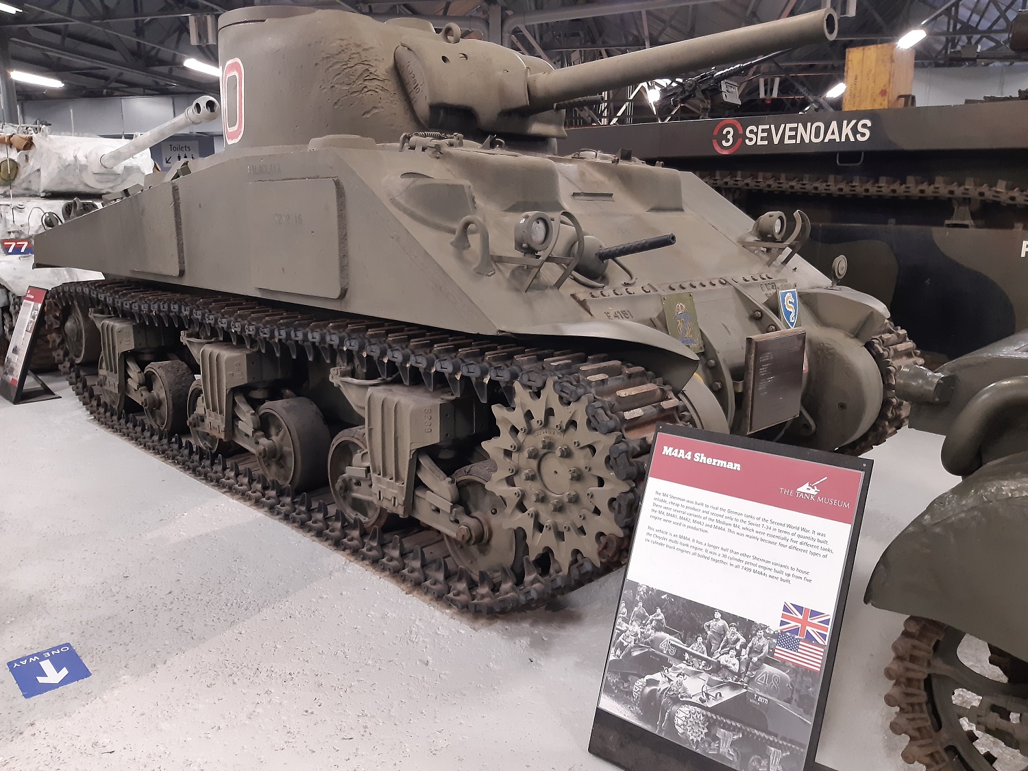 One of the original Sherman tanks. all the tanks here were used at one time or another, either used a training tanks, original tanks as they had shell damage in places which can be seen, or captured tanks during the wars. Some are also donated from other countries.