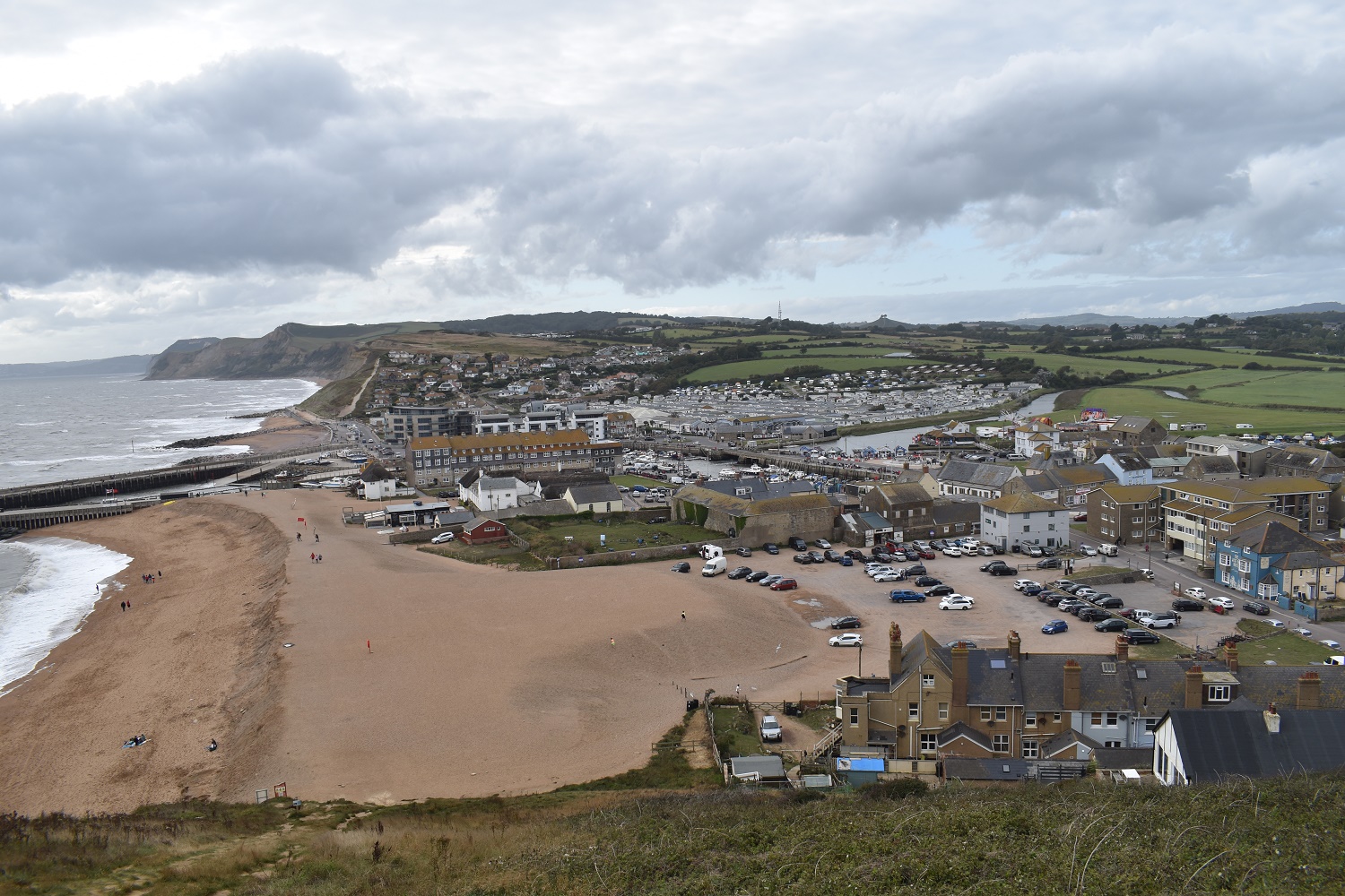 West Bay, the plentiful car park is good value at £2 for the day and allows for good walks and a nice harbour wander.