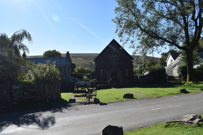 Early morning Belstone. Now I’ve driven past the car park which was over full and got into the village. I’ve parked up the road but this photo is taken between cars which are all around the triangle green. It looks like a busy time in Belstone, the cafe will be open later