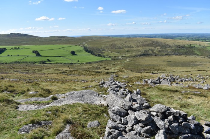 Wild Tor looking back to Cosdon on the right and my next destination, Steeperton Tor left. Belstone Tor is in shadow at the back