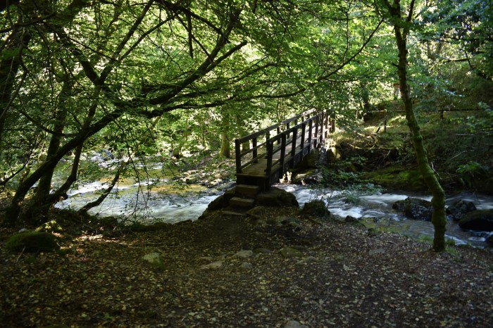 About 30 metres from the lower path is this bridge across the River Taw as it cuts its way through the Cleave
