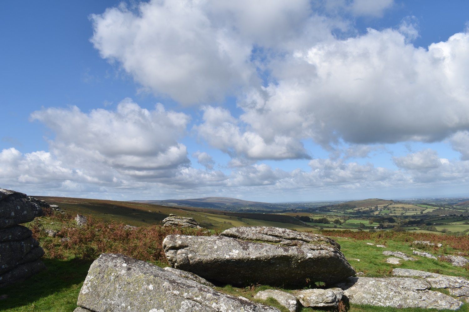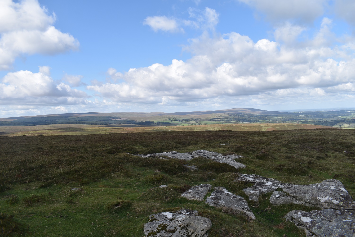Cosdon Beacon back left in view, as I start along the path towards Hurston Stone Row. East Devon stretching away in the centre