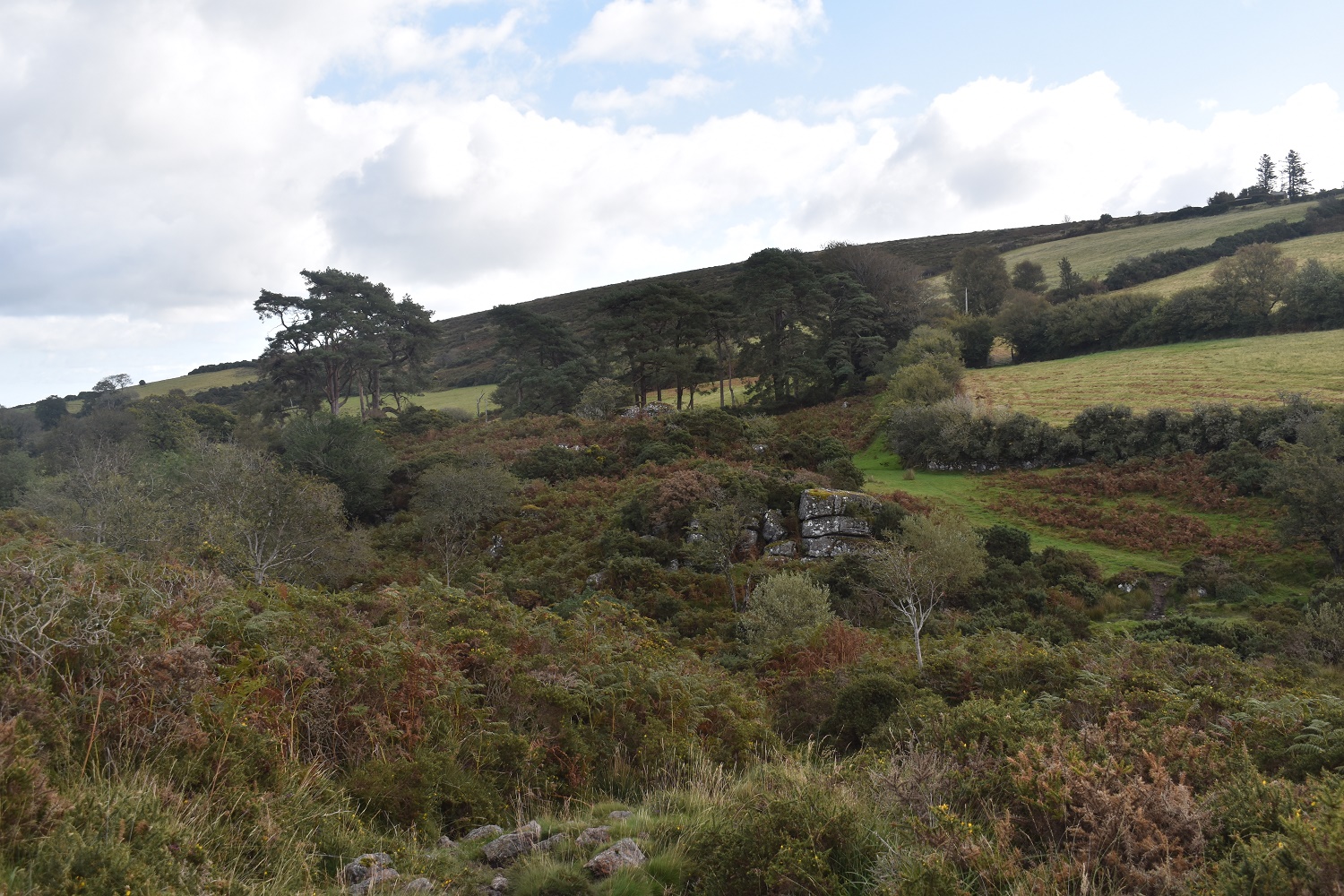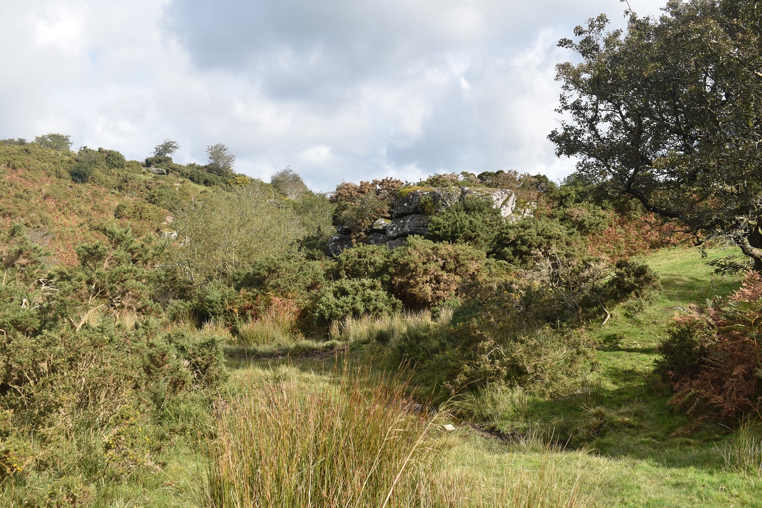 Hurston Castle Tor, some of it is on the bank over there on the left and more behind that main outcrop as well. To get here however I made the mistake of heading down to the River Bovey in order to follow it. Don’t do that, it is boggy as hell down there, handrail the river about 200 metres above, until just short of the wall where a track will bring you down to this main outcrop.