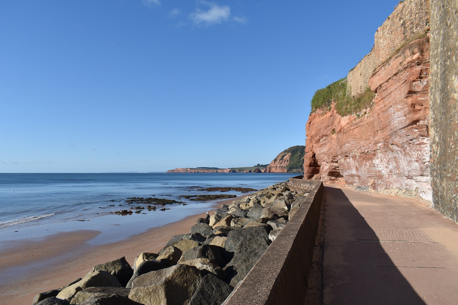 Sidmouth sea front, more of the Jurassic coast beyond Sidmouth. And more of it falling down, as recent as last week another section came down, closing the East Beach completely