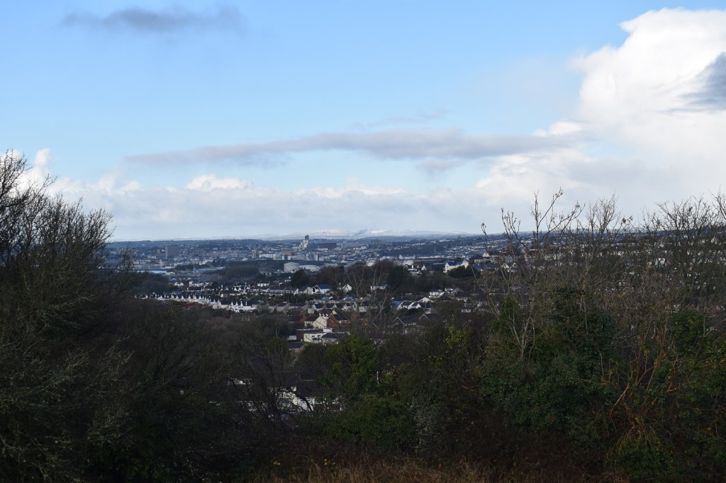 The weather was snowing in most of the country, down here we sometimes get snow on the moors. This is Bodmin Moor about 20 odd miles away, not the best photo but I am taking it through the bedroom window!Starting out, looking over Plymouth, Bodmin Moor is at the backStaddiscombe fields, normally on a Sunday this would be full of football matchesThis stone is a WW2 memorial marking the radar station for the heavy anti aircraft battery that protected Plymouth from 1941 to 1945, code named Z4