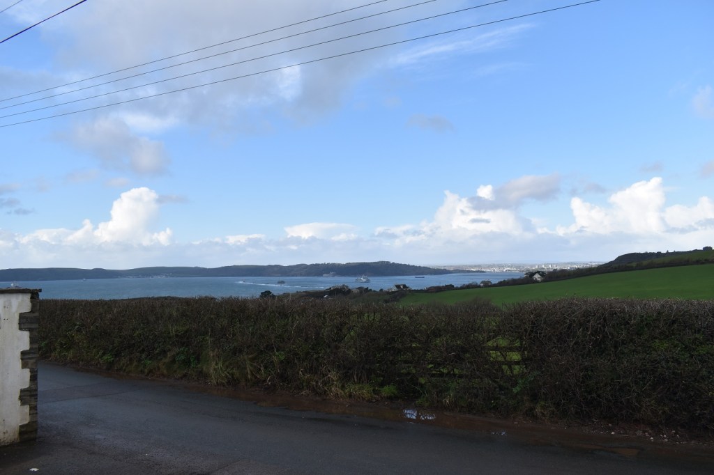 Looking from Hollacombe towards a white DartmoorA view to the sea, Wembury is down there in the dip