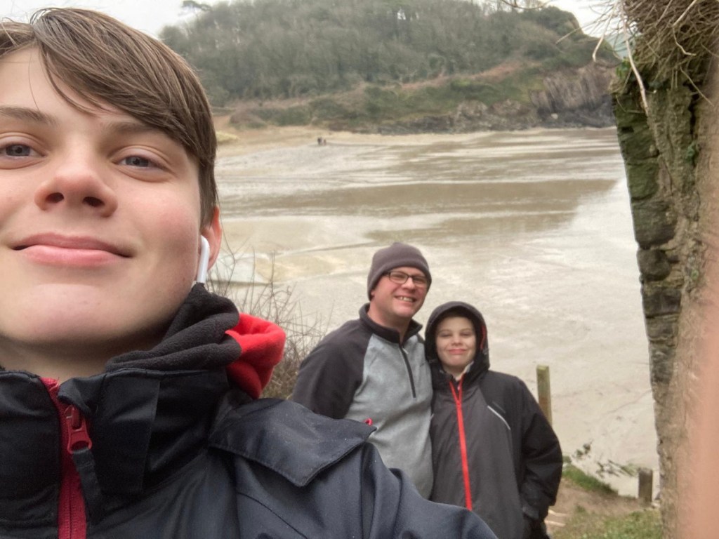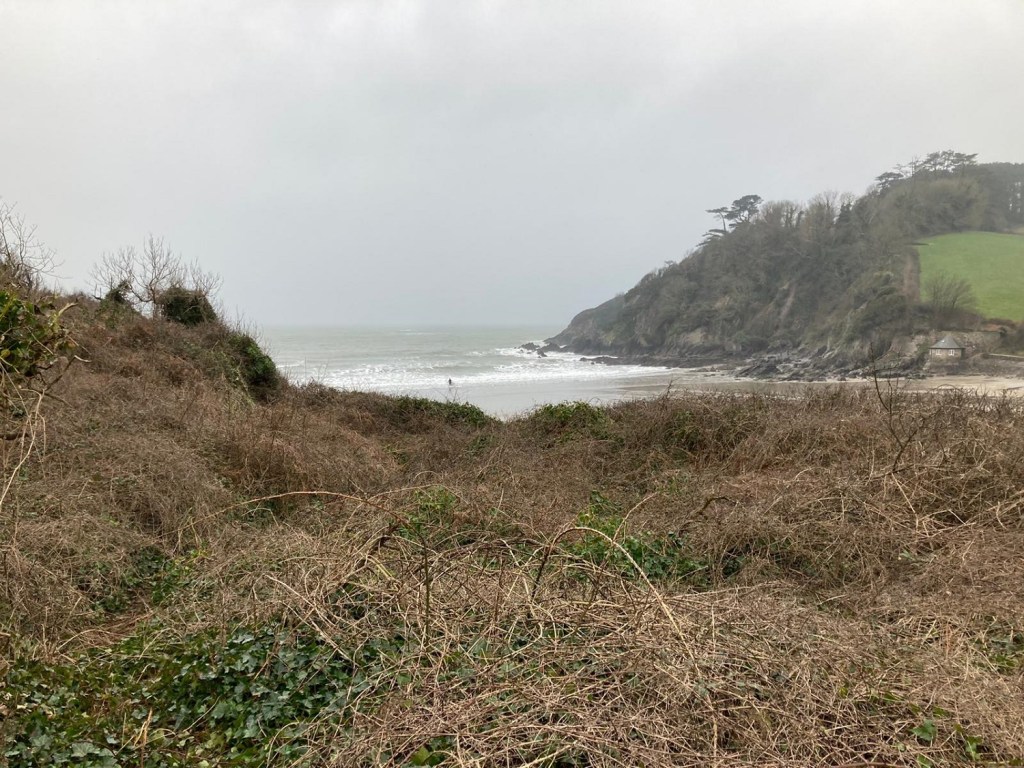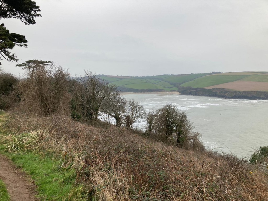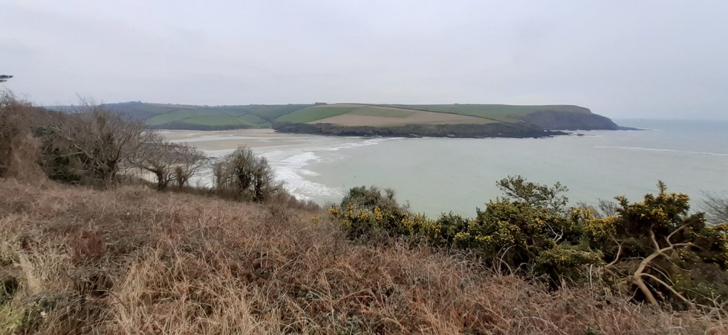 Whilst the rest of the country has been covered with a blanket of the white stuff, us down here in Devon have endured (rather than enjoyed) day after day of strong winds from the east and plenty of rain. This was another of those days, but we managed to pick a gap in the weather were it was just windy, cold and low cloud. Even during this break we still had a bit of mizzle as we walked back. This was a short section of the coastal path which needed filling in. We had walked to St Anchorite’s Rock last January, and this was the link back to Mothecombe beach, as I’d completed the section east of this with my brilliant Bigbury walk in May last year. This means I’ve completed the section from Slapton Sands around to Plymouth, which I’m pleased with, and hopefully this summer I can target areas further afield such as North Cornwall and Devon. This walk was a short drive away and Mothecombe is a very busy spot. Even on this inhospitable day there were 20 or so cars in the car park, which is free during the winter but a charge in the spring and summer. However we only saw two other people on our walk to the west along the coastal path, the weather for the rest of the weekend wasn’t great so I was pleased to be out with the boys enjoying the rough seas crashing against the rocks, in all types of weather the coastal path has it.