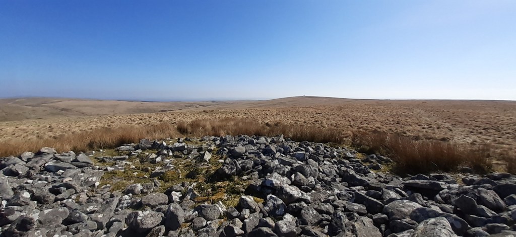 Green Hill, I restacked the cairn which is the end of the Staldon Stone row and had a brew looking at Redlake