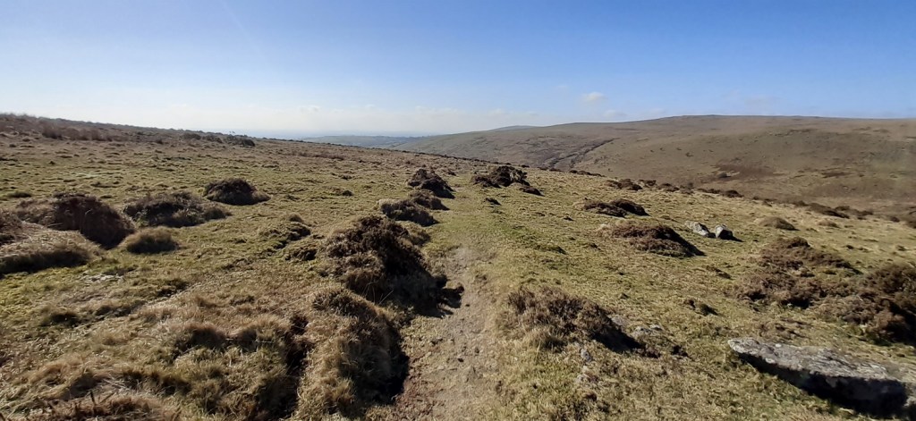 Restrictions loosened, I decided to head further into Dartmoor. Still on its southern side but the walk is straight into Dartmoor proper, once at Redlake you leave behind the last few remains of people and head off for some solo time. The best part about this walk is the route to Redlake, using the Zeal Tramway path I didn’t see a soul, not something you would get if you walk the tarmac path from Shipley Bridge up to Avon Dam. The weather was glorious, expecting a forecasting of cooling weather I wore 3 layers, 10 minutes in and I was down to one and it stayed that way in some superb sunshine. Once at Redlake I made a beeline to Green Hill, the conditions underfoot were good as we have had little rain for a few weeks now. Green Hill is a remote spot and I headed a bit further to Fishlake Rocks to tick these off my list. Not the grandest of piles but being stuck in the middle of miles of tufty yellow grass, mires and tough walking they are a good addition to my 500. From these rocks I spotted what looked like a faint track/sheep path across Fishlake Mire, I took a gamble and it paid off as I easily made the River Avon, I probably should have headed uphill a bit to Huntingdon Warren but I fancied trying to follow the infant river south to see if I could. I was on the eastern side of the river and it sort of worked. I learnt that I needed to stay right on the banks of the river to make progress, away from it, even 2 or 3 metres, meant very thick tufty grass or mossy bogs that moved underfoot as small streams fed into the river. I made Broad Falls in reasonable time, but the distance was much further than I expected (around 2km). Once at Avon Dam the normal throng of people greeted me, lots more walking the path up to the dam and lots returning to the car park. All in all a fantastic walk and despite it being Easter Sunday, only the last short section had lots of folk. Great day.
