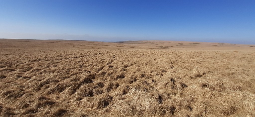 Miles and miles of tufty yellow grass, tough walking if there is no path