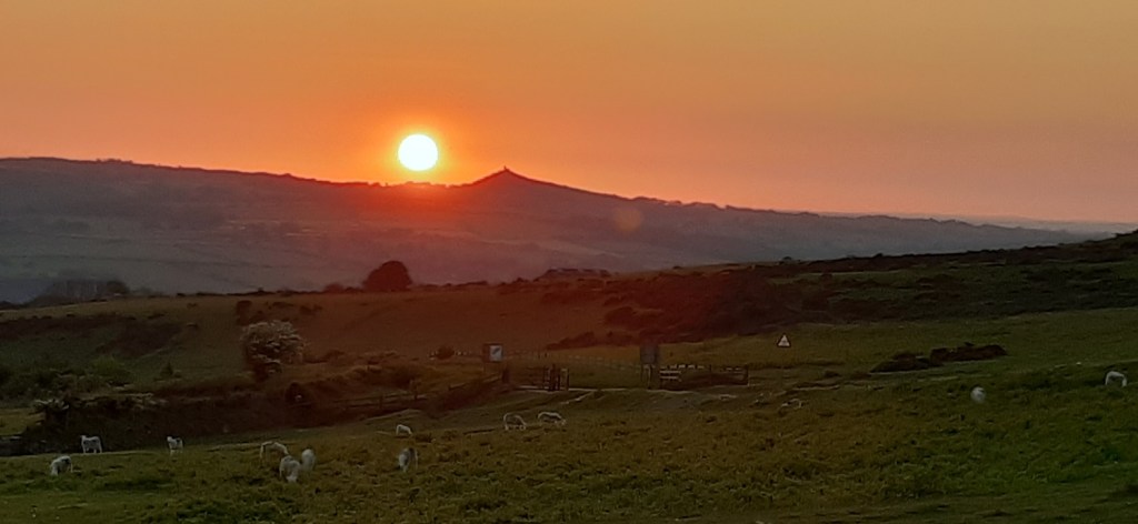 For a week every night had been great sunsets, however I couldn’t walk any earlier than I did as I needed to wait until at least a week before the solstice, because that’s when the sun sets right on Brent Tor. On reaching Roos Tor, I changed my route because of the cloud, instead heading for Merrivale quarry to give the cloud time to clear and see a different view. Did it work, of course it did and then some. Normally I don’t like having too many people around me on walks, but at the end of this I stood amongst people saying wow, over and over again, loving sharing a simple experience with strangers. Talking to them on how around the 21st June the sun sets on the tor from this angle. I always say every year not to spread the news about this too far, but after this last year of being chained to our living rooms, tell the world, get everyone out here for their mental health, its fantastic.